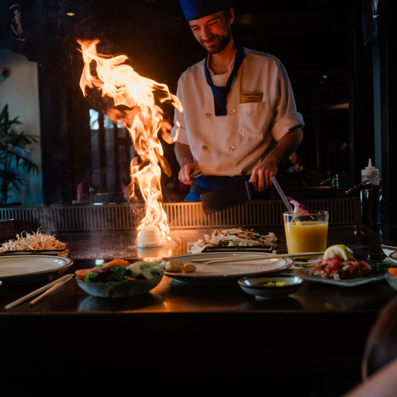 「他の鉄板焼きレストランと一線を画しているのは、本格的な日本の鉄板焼きとエンターテイメント、パフォーマンス、そしてローカルスタイルのひねりを組み合わせるという私たちの専門性です」とボーは語ります。